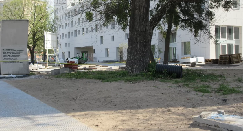 Jakoś ta budowa nie ma szczęścia a zwłaszcza po kontrowersjach wokół niej. Najpierw była walka z kupcami, którzy dali się ograć otwarciem nowego Zieleniaka i mrocznym zapewnieniu, że bazarek zastępczy im wystarczy. Paru szczęśliwców może i poprawiła sobie byt, ale część musiała od razu skapitulować gdyż nie załapała się na luksus bunkra a i na odległym zakamarku od głównych tras klientów nie było perspektyw utrzymania się. Za to miejscy esteci aż piali z zachwytu, że co prawda obiecywali, że nie będą to mieszkania dla krezusów, ale teraz okazuje się, że im klocki postawili i przybędzie około 200 rodzin z samochodami. Dlaczego tak twierdzę, gdyż czynsze tam na pewno nie będą zbliżone do komunalnych gdyż i w komunalnych teraz też trzeba śmierdzieć mamoną, bo już nie ma ulg ani miłosierdzia administratorów. Teraz komunalne już nieraz przewyższają cenami nad niektórymi spółdzielniami i wspólnotami dobrze zarządzającymi. A jako to własność miasta to wątpię czy tam zarządzanie będzie rzetelne i w miarę tanie. Jakoś też ucichła sprawa muzeum Ochoty, które miało się tam znaleźć- czyżby władze Dzielnicy po pięknym uśmiechu z Ratusza Warszawskiego odpuściły sobie naciski na inwestorze? Miało być huczne otwarcie 7 Listopada, ale jak zwykle u nas musi się coś zadziać. Przedłużyła się budowa, bo covid, bo wojna w Ukrainie, bo inwestor chciał i znalazł pretekst (nie tylko zatokę Ormuz) tylko trudności obiektywne i podniesione koszty o 20 do 30%. Teraz na gwałt próbuje zakończyć te blok owce. Na 1 Maja jak za komuny nie zdąży -chyba, że będzie oddawał połowicznie. Po co ten pośpiech? · Co za różnica oddać 7 Lipca i to, też na „L” jak Listopad? ·Z tego pośpiechu to i chodniki układają” na dzień dobry” krzywo. Przyjrzyjcie się Państwo na wygląd względem krawężników. Wózek z palikami drewnianymi sam przy sobotnim wietrze(przy mnie) zjechał na niedokończoną jezdnię prowadzącą do garażu, więc jaki jest tam spadek chodnika? Nie do końca ocieplone i zakończone ściany zewnętrzne i skoro takie niedopatrzenie to, co można być pewny, że wszędzie sumiennie wykonane? Na koniec zastanawiam się, co to (na zdjęciu dopiero zauważyłem) jakieś druty poprowadzone do pomnika przyrody. Czyżby podłączyli ten pomnik pod jakiegoś rodzaju defibrator? Tyle piachu wokół niego a przecież topola to chyba nie pustynne drzewo?