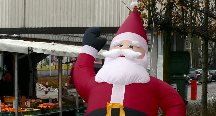 Jeszcze przed tygodniem na Zieleniaku Św Mikołaja można było spotkać tylko na stoiskach w hali. W ostatni czwartek pojawił się na dziedzińcu w doborowym towarzystwie bałwanka i pięknie oświetlonej choinki. Klientom przypomina, że Święta Bożego Narodzenia są już „tuż, tuż” a dzieci mają sporą frajdę.