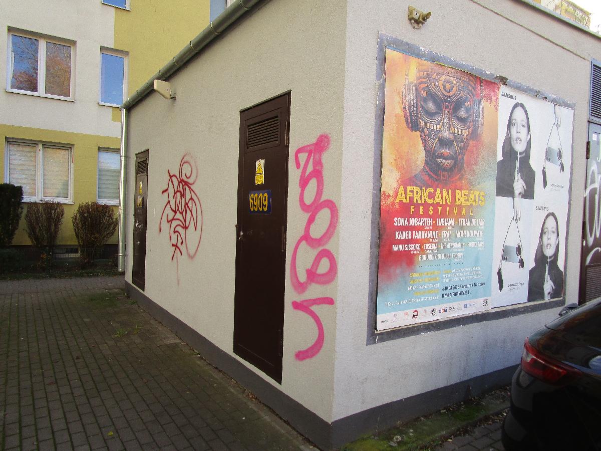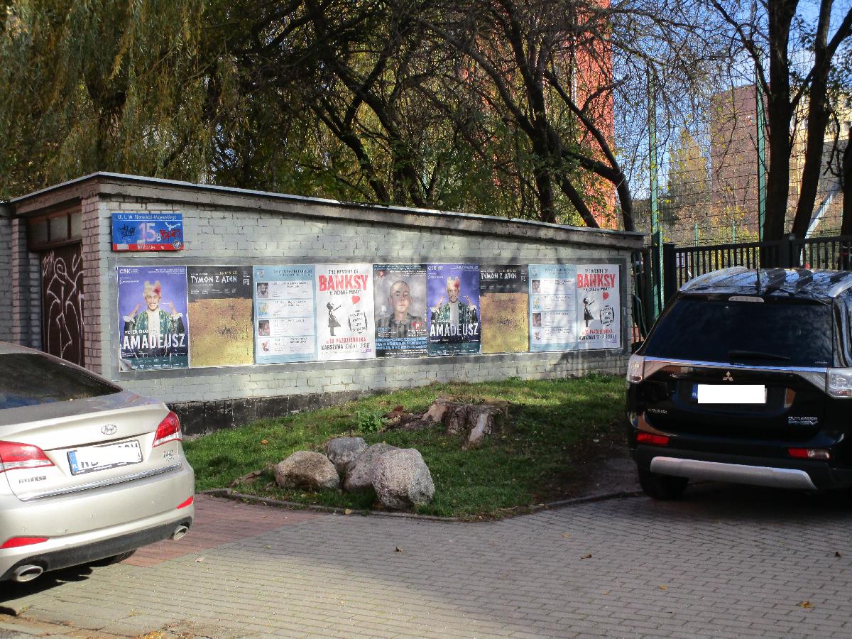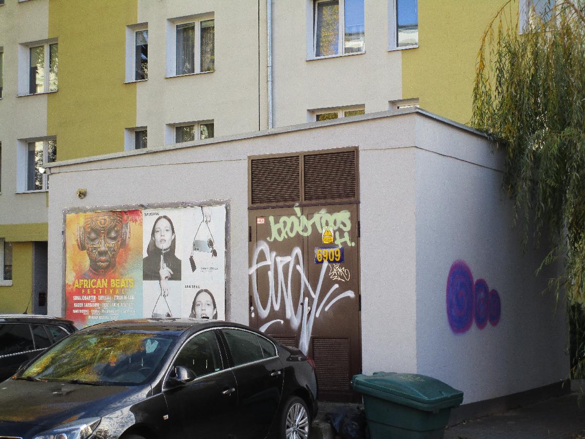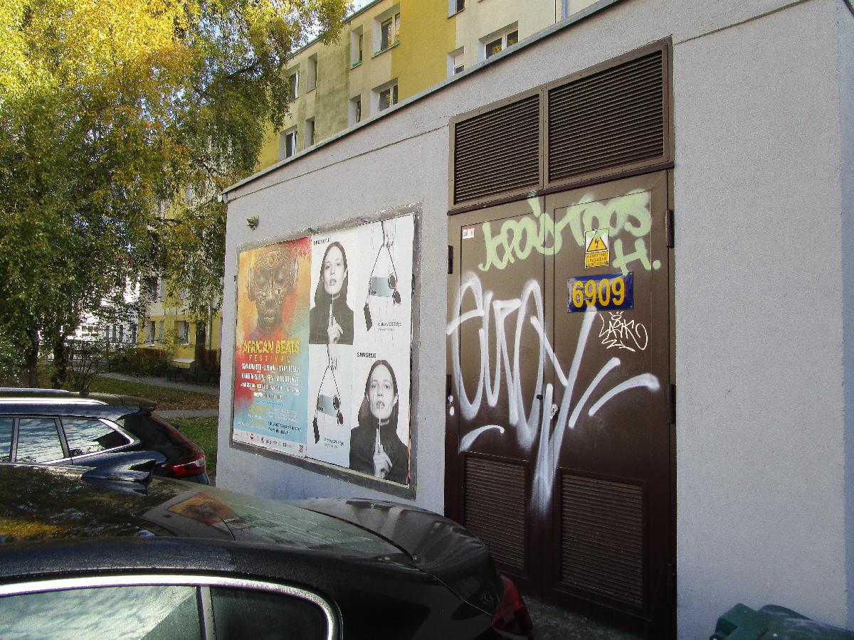 Galeria: 1. Mural przedstawiający Chrystusa zamalowany niedługo po oficjalnym otwarciu. 2. Interpelacja radnego dotycząca wykorzystania trafostacji na terenie Ochoty na miejską sztukę. 3. Ulotki polityków z różnymi reklamami: od zaginionych zwierząt, przez zrzutki na zdrowie, aż po najlepszą pizzę. 4. Propozycja podziału ścian na płatne afisze, społeczne murale i czyste powierzchnie. 5. Oczekiwanie na odpowiedź burmistrza odnośnie proponowanych rozwiązań.