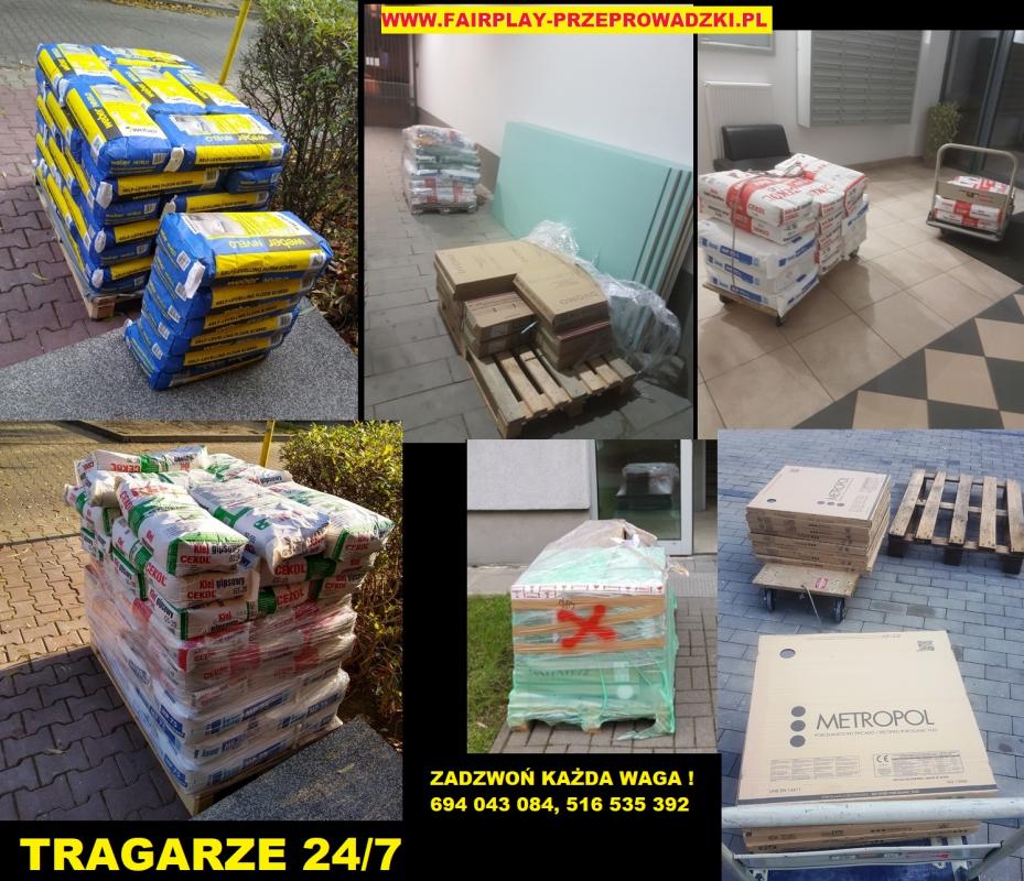 TRAGARZE24h. WNOSZENIE /ZNOSZENIE po schodach mebli gabarytów rzeźb dzieł sztuki art.budowlanych/remontowych spieki płyty gres blaty kuchenne bloczki płyty GK OSB worki z klejem zaprawy parkiety deski ogrodzenia okna drzwi